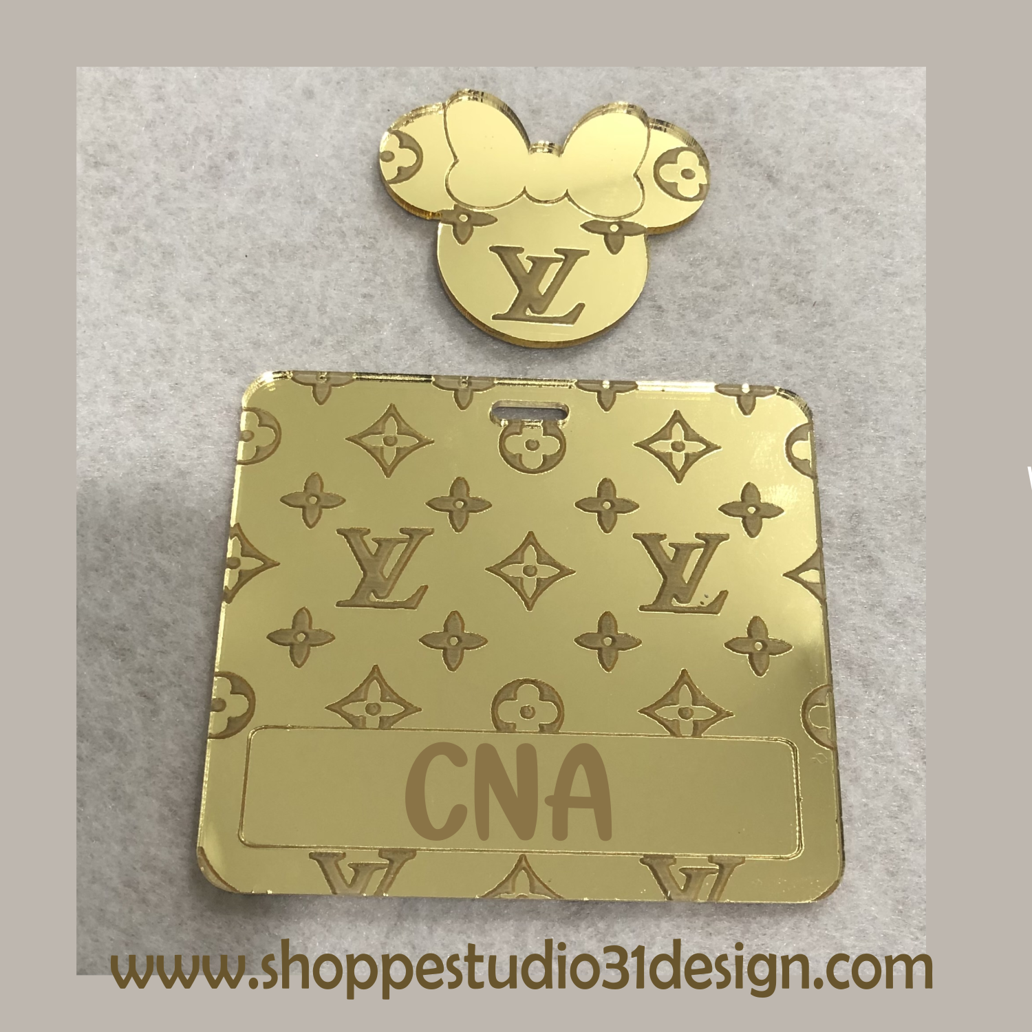 Gorgeous Loius inspired badge reel with minnie head. Customize with your title or name.