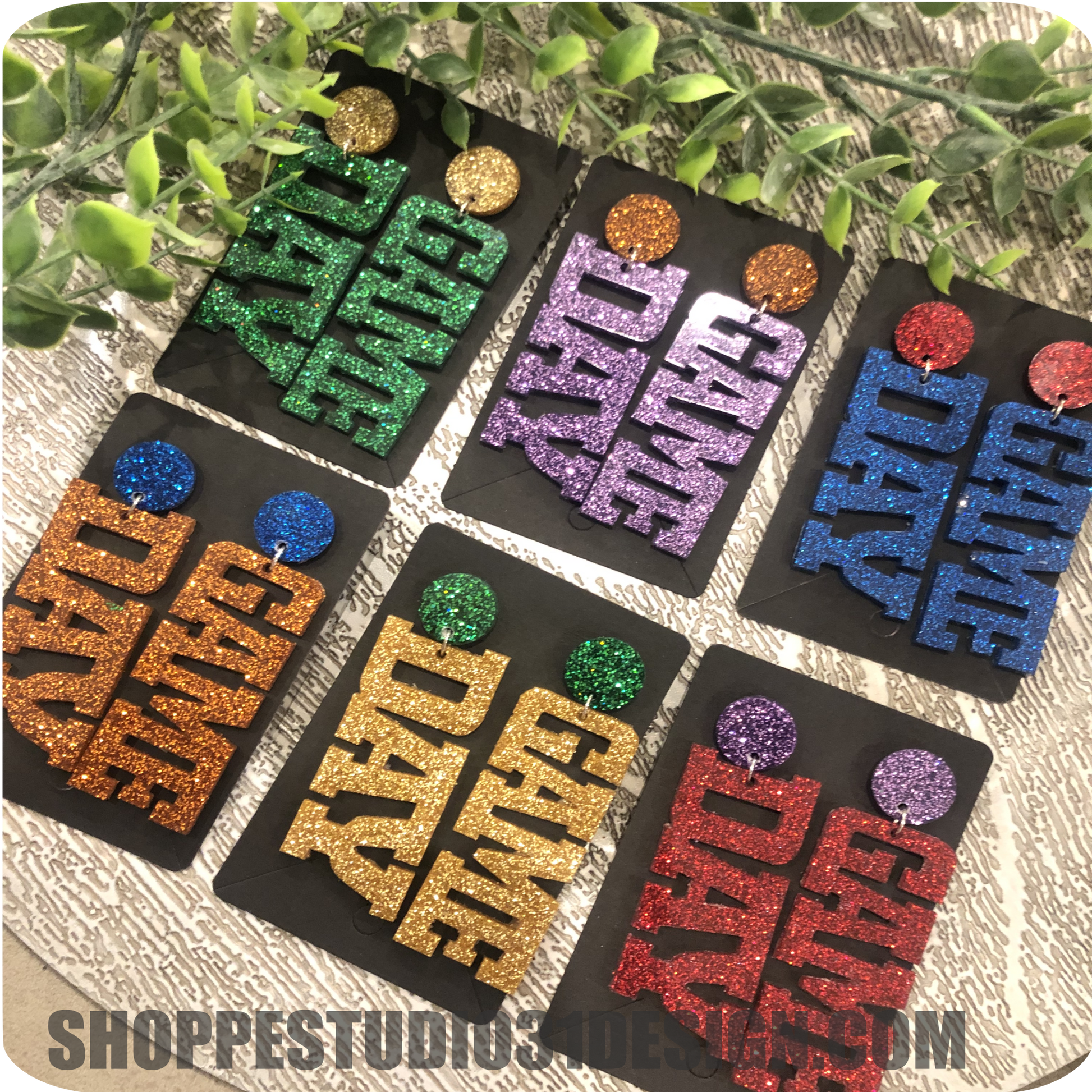 Custom team color "GAME DAY" earrings. Perfect addition to your game day outfit! Customize with your favorite team colors.